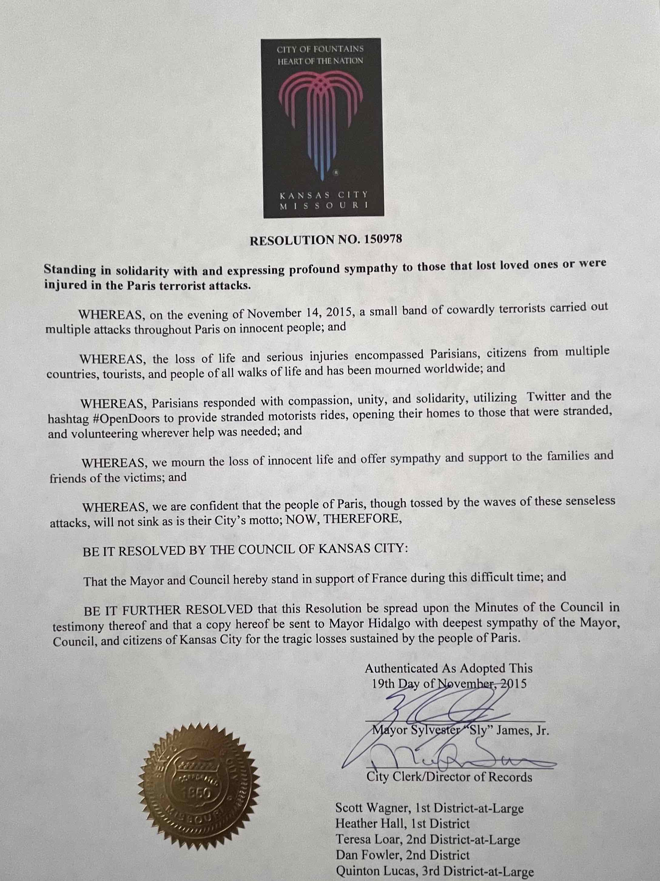 This year, as France commemorates the attacks, we want to reflect on that moment when Kansas City stood in solidarity with France.