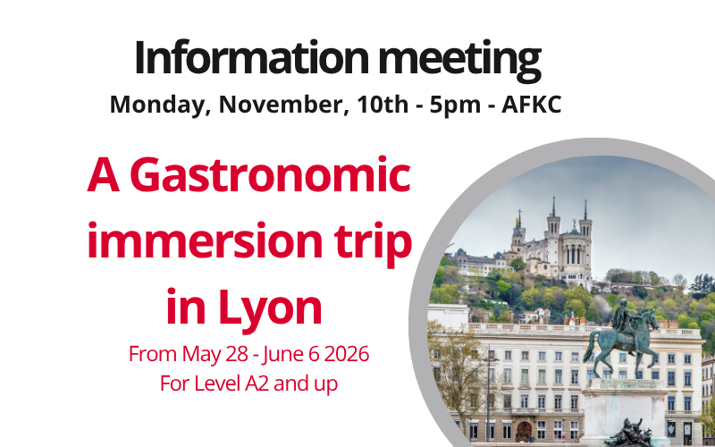 Join AFKC for a unique immersion in Lyon, the culinary capital of France, where language, culture, and gastronomy come together for an unforgettable journey.